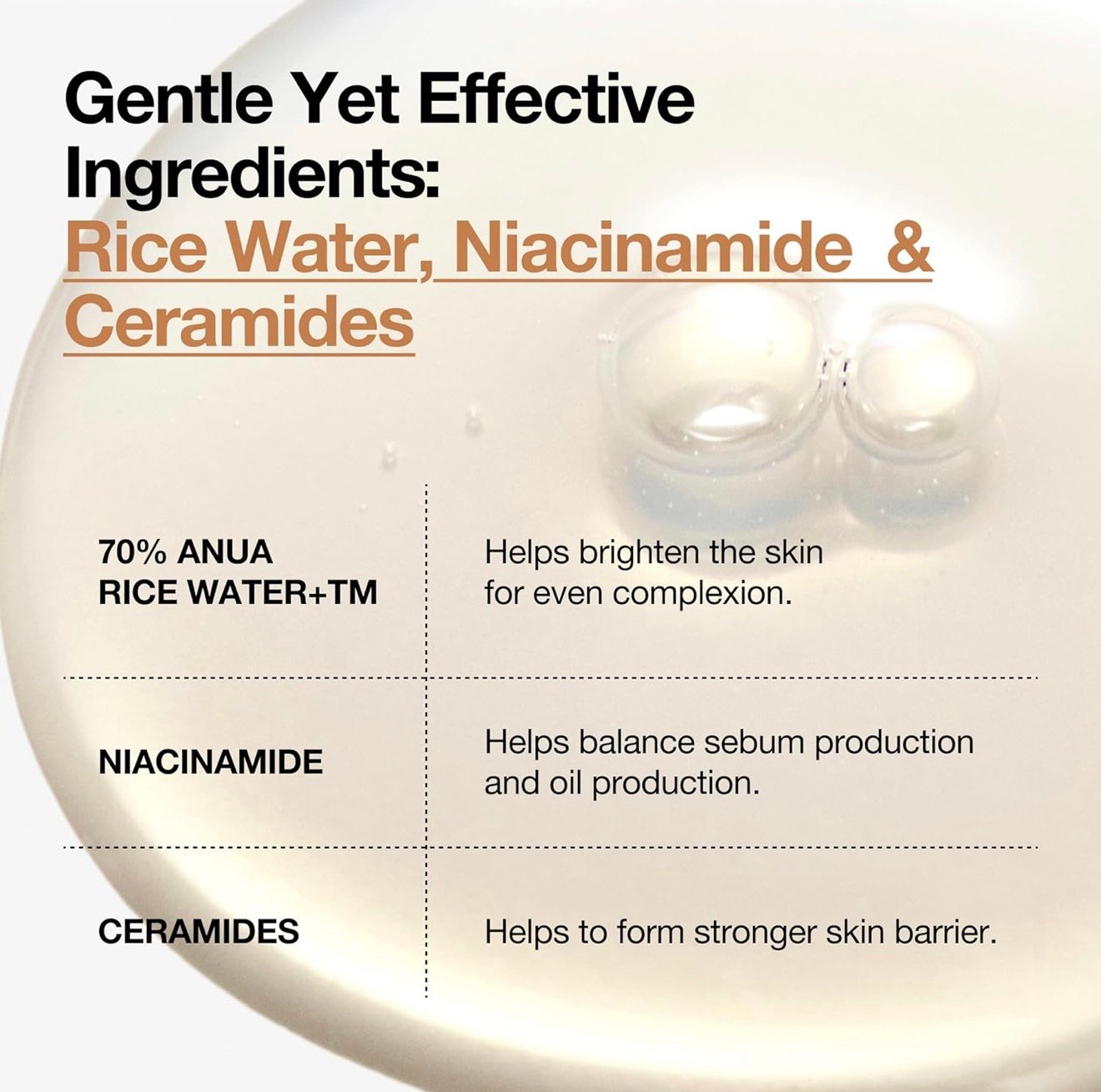 [CERAMIDES & PROTEIN FOR HEALTHY SKIN BARRIER] Contains ANUA RICE CERA-PROTEIN, a blend of Ceramides and Protein which make up the skin’s natural barrier, to strengthen and protect the skin barrier.