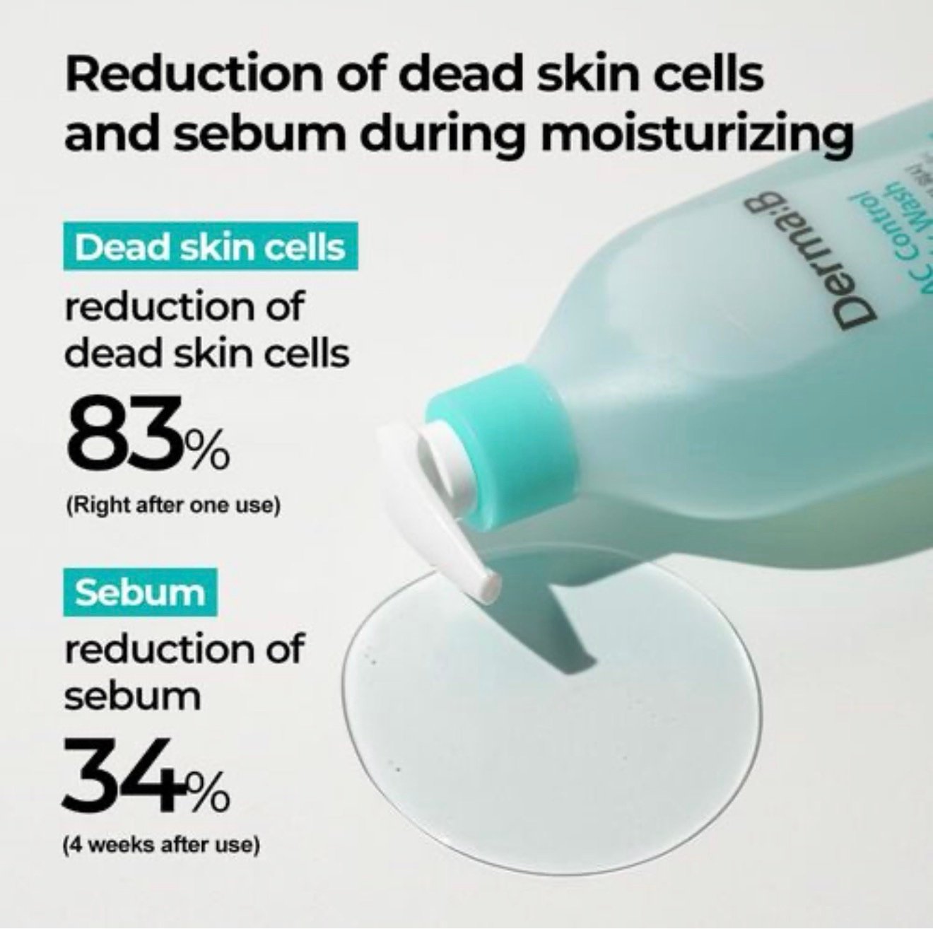 – OIL AND MOISTURE BALANCE: AC Control Body Wash removes only unnecessary sebum, while 8 types of Hyaluronic acid lock in moisture to maintain the optimal oil-moisture balance