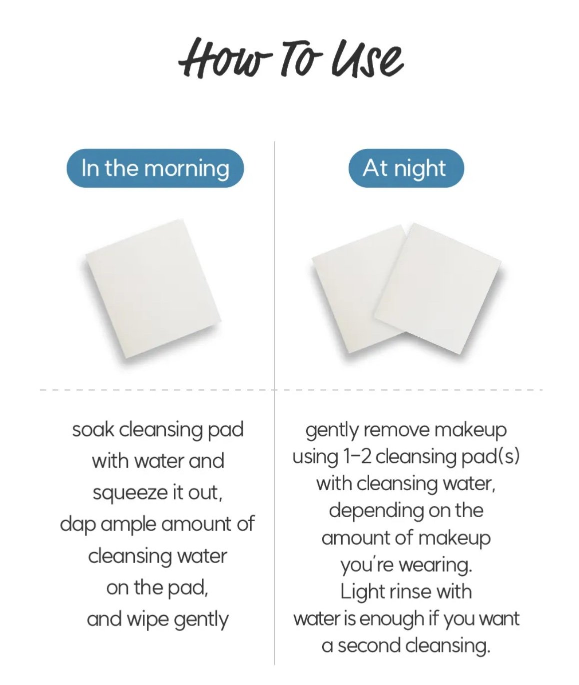 طريقة الاستخدام صباحًا: اعصري قطنة المكياج المبللة بالماء وضعي ماء التنظيف عليها لمسحها.
