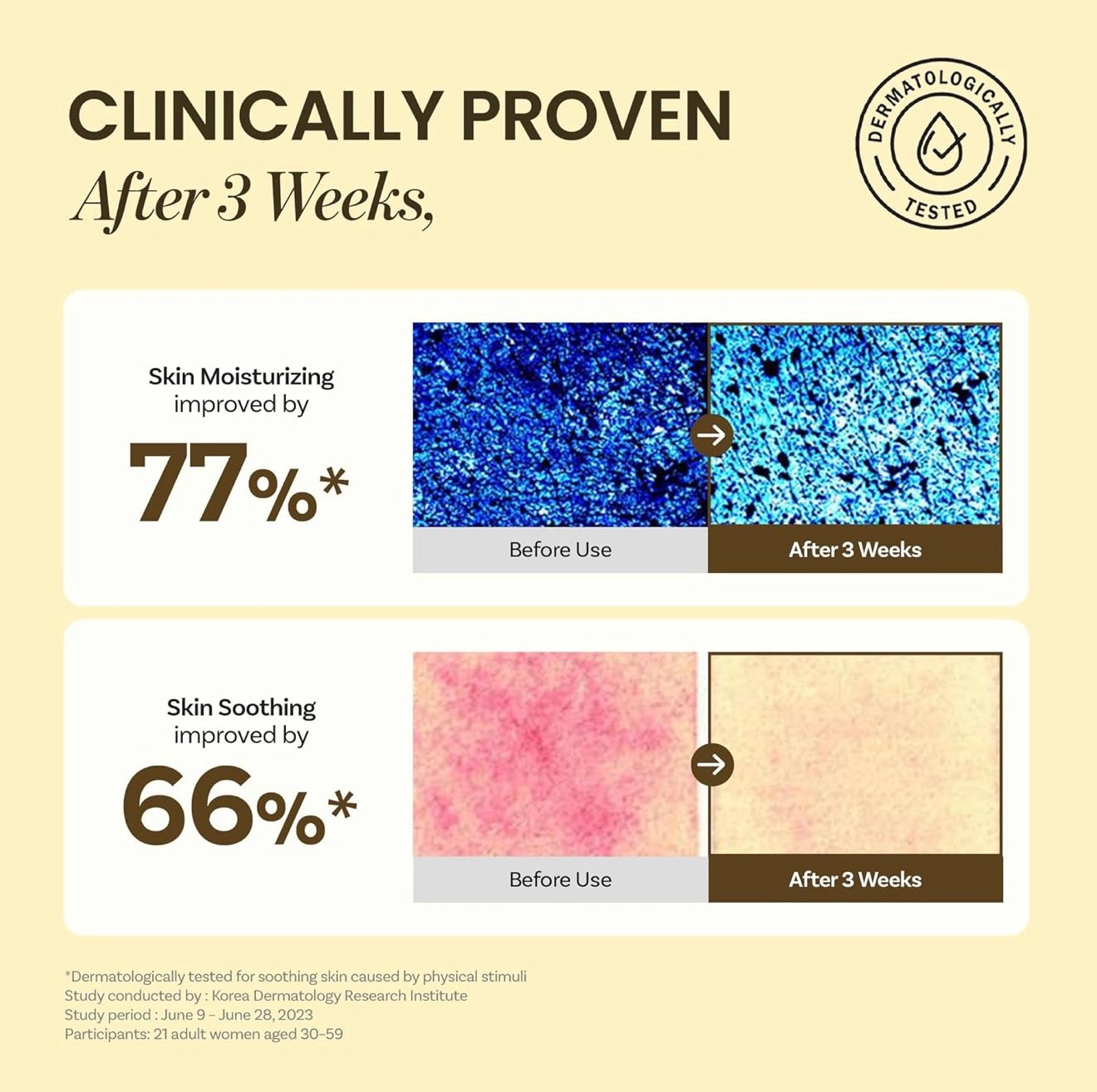 يمنح هذا اللوشن تأثيرًا مهدئًا وفعالًا، ويقوي حاجز البشرة، ويحافظ على ترطيبها ليمنحها إشراقةً ونضارةً. نظام عناية ثلاثي الخطوات للبشرة المتعبة، غني بمستخلص نبات السنتيلا الآسيوية، يوفر تهدئةً للبشرة، وتقنية NC P-Complex الحاصلة على براءة اختراع، والتي تقوي حاجز البشرة، بالإضافة إلى مركب الببتيدات التسعة الذي يشكل حاجزًا مرطبًا، ليمنحكِ بشرةً ناعمةً ورطبة. أظهرت الاختبارات انخفاضًا في تهيج البشرة بنسبة 66.63%، وانخفاضًا في فقدان الرطوبة بنسبة 84.72%، وتحسنًا في ترطيب البشرة بنسبة 77.35%.