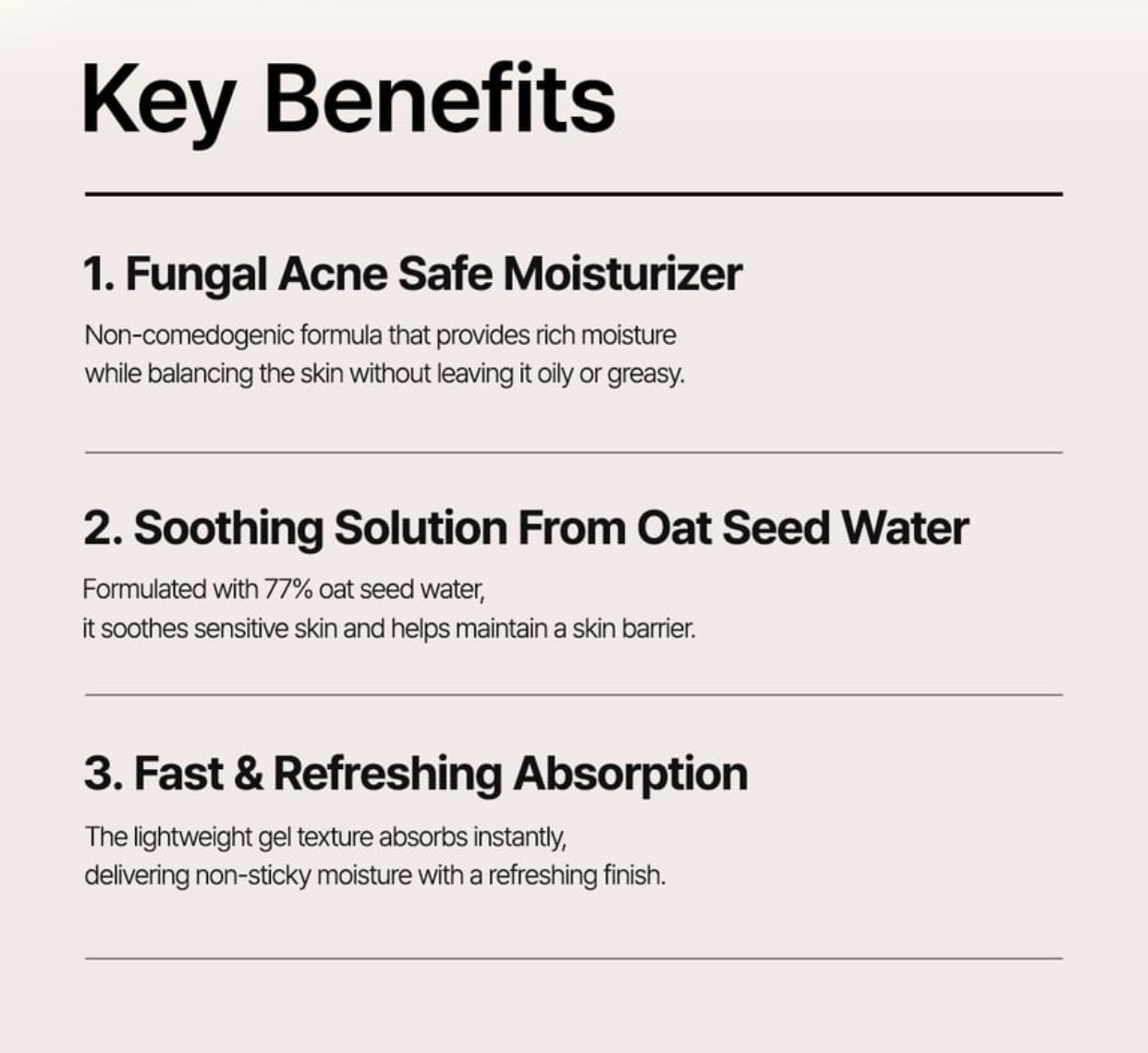 Refreshing gel cream with nourishing Avena Sativa (Oat) Seed Water instantly calms dry and sensitive skin.
