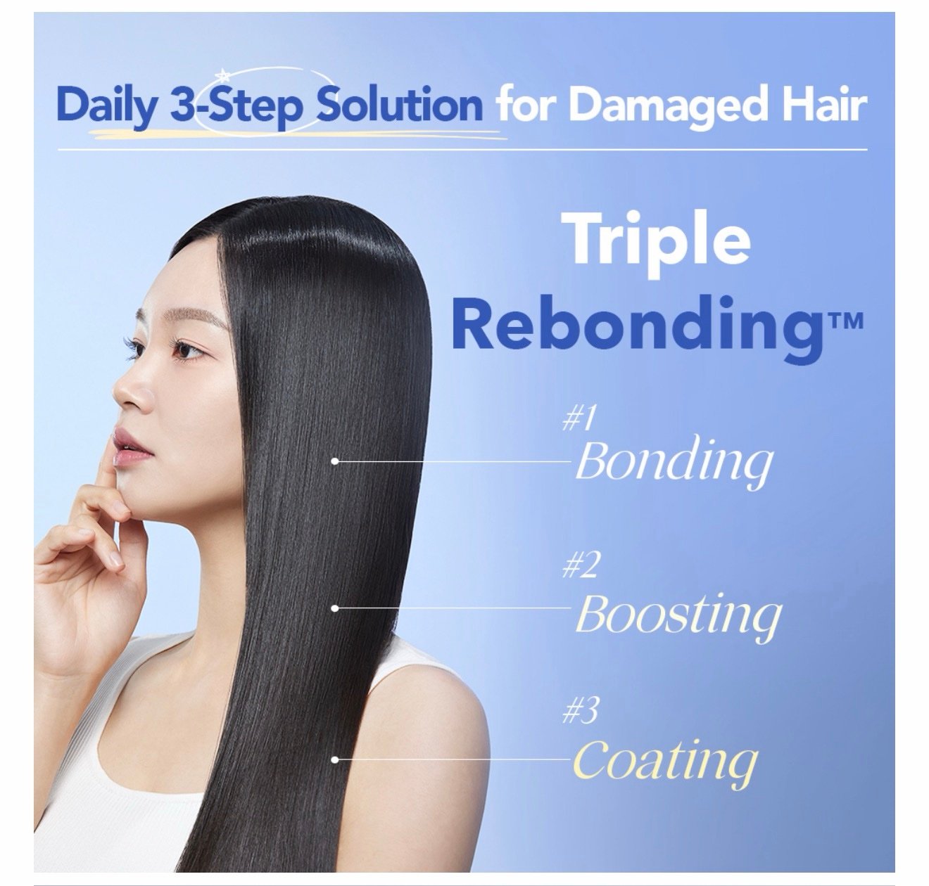 ومع ذلك، بمجرد تكسرها، لا يمكن استعادة روابط البروتين. مع مكون الربط الحصري من تريسيل، اربط البروتينات المكسورة، وعززها، وغطِّها! جرب روتين عناية من ثلاث خطوات دفعة واحدة! اكتشف قوة الترابط القوي الذي يلتصق بقوة!