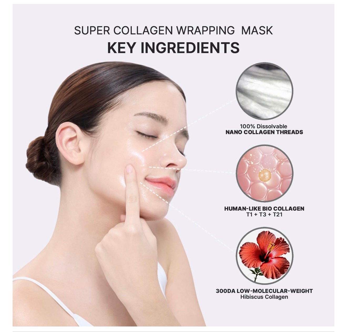 – يعمل قناع الكولاجين الفائق على تقشير البشرة بلطف، وإزالة الدهون الزائدة وخلايا الجلد الميتة. تعمل هذه العملية على تنعيم سطح البشرة، مما ينتج عنه بشرة أكثر نعومة دون تهيج، ويساعدكِ على الحصول على إشراقة متألقة.