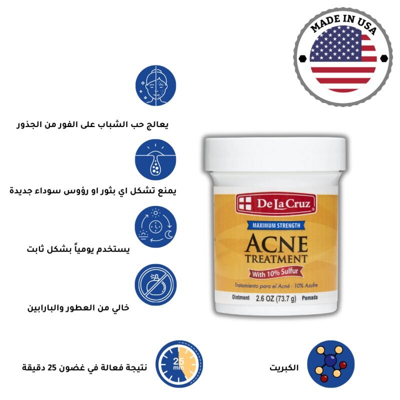 De La Cruz Acne Treatment Maximum Strength with 10% Sulfur (73.7 g) علاج دي لا كروز لحب الشباب بأقصى قوة مع 10% كبريت