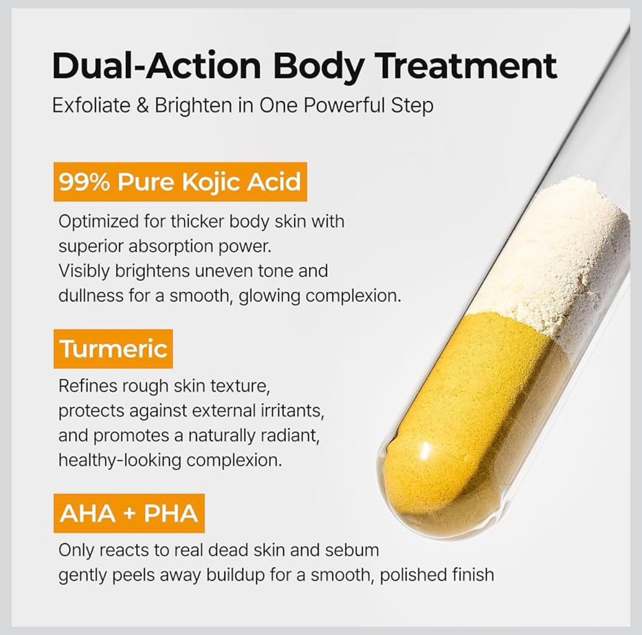 Formulated with high-purity kojic acid, turmeric extract, and exfoliating AHAs + PHAs, it helps dissolve dead skin cells, unclog pores, and reduce dullness without harsh irritation.