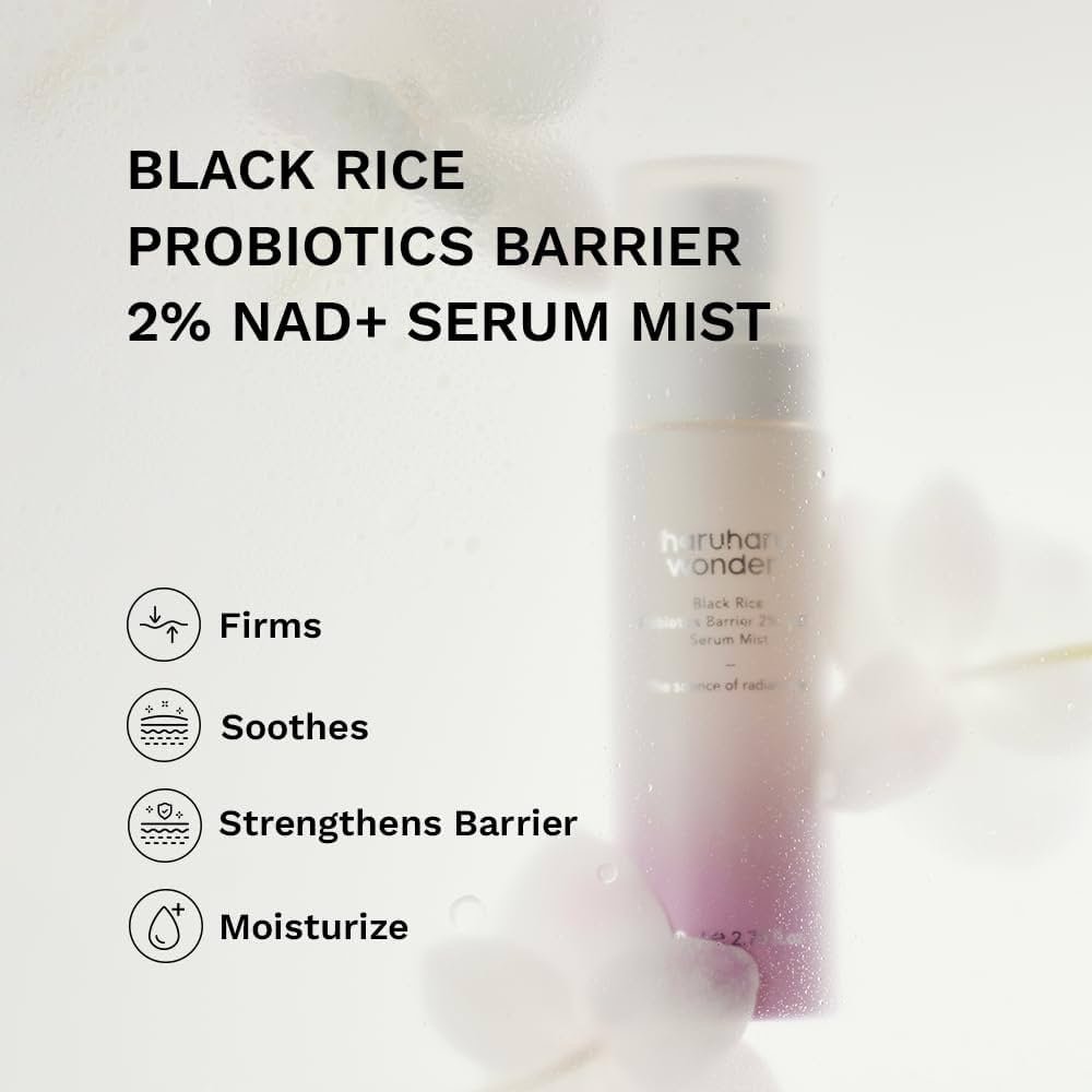 Haruharu Wonder Black Rice Probiotics Barrier NAD+ Serum Mist 80ml رذاذ سيروم هاروهارو وندر بروبيوتيك الارز الاسود لتجديد البشرة وتعزيز نضارتها