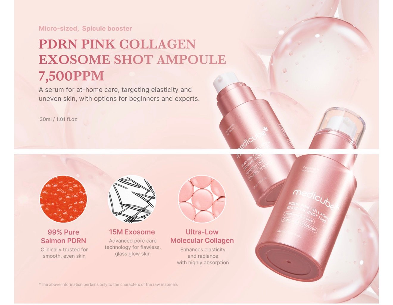 Medicube PDRN Pink Exosome Shot Serum 7500 30ml سيروم ميديكوب بي دي آر إن الوردي إكسوزوم شوت 7500 لتفتيح البشرة وتحسين ملمسها