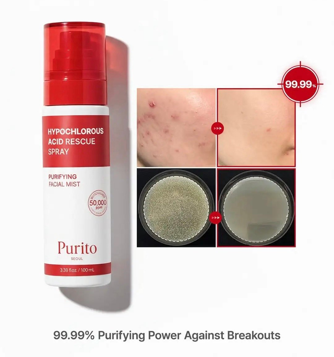 Purito seoul Hypochlorous Acid Rescue Spray 100ml بخاخ لإنقاذ البشرة من الحبوب بحمض الهيبوكلوروس