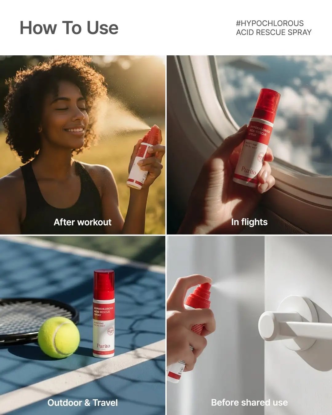 Spray anywhere, anytime, like after a workout, during flights, travel, or after shared use.