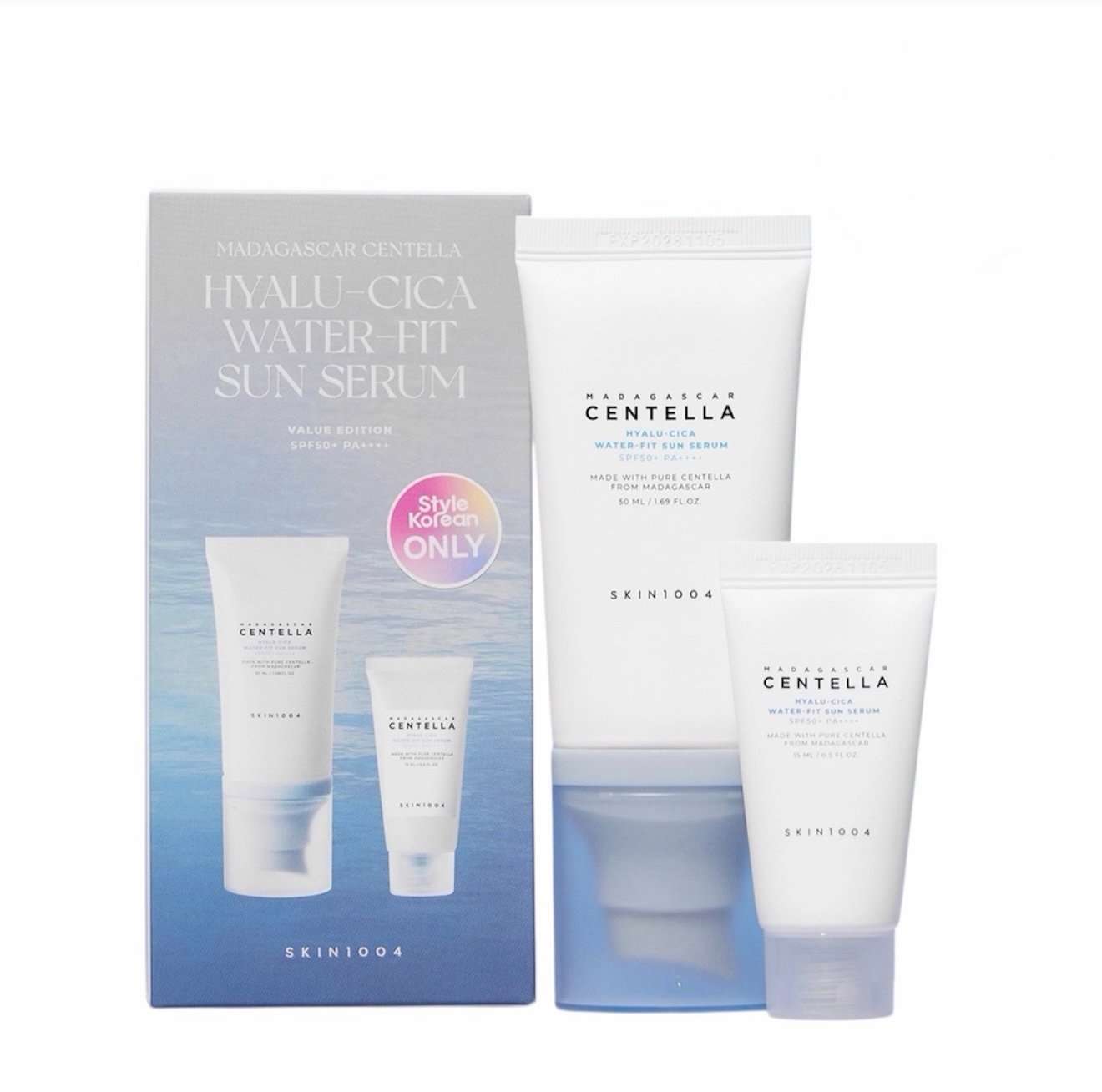 – واقي الشمس الشبيه بالمصل الأكثر مبيعًا من SKIN1004 مع ترطيب قوي.